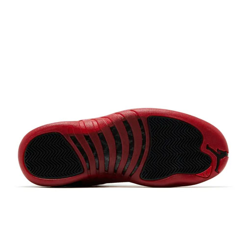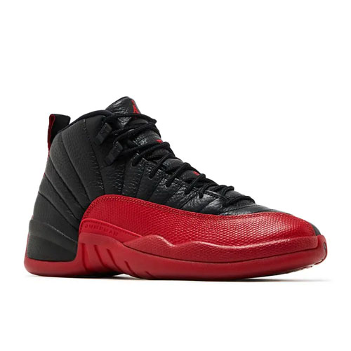 The 2025 edition of the Air Jordan 12 Retro 'Flu Game' brings back the model MJ wore during the infamous Game 5 of the 1997 NBA Finals. Stitch lines adorn the black tumbled leather upper, contrasted by red lizard-textured overlays. The Jumpman emblem decorates the tongue and heel tab. A lightweight Phylon midsole packs a full-length Zoom Air unit for a plush feel. The red rubber outsole uses black herringbone pods for traction and an exposed carbon fiber shank plate for stability.