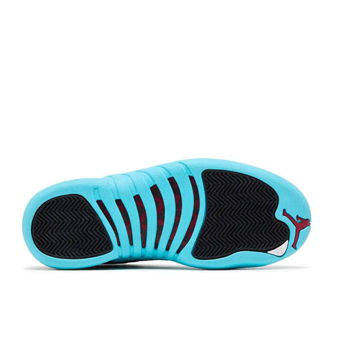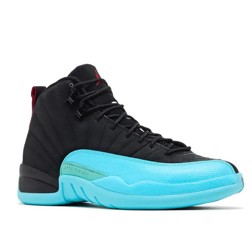A follow-up to the Air Jordan 11 Retro 'Gamma Blue,' the Air Jordan 12 Retro 'Gamma Blue' features the bright color on its basketball-textured mudguard, midsole and outsole. The shoe's signature Rising Sun Flag upper is finished in black nubuck, with Gym accents on the heel tab, branding and carbon fiber plate underfoot.